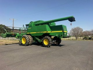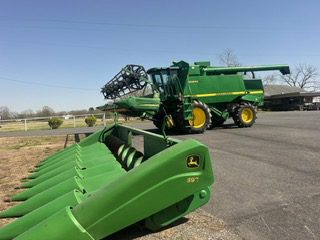 1998 year model. 9610 John Deere combine 4x4 duals, rasp bar, chopper, variable speed feeder house. 4,000 Engine hours, 2800 separator hours. Bought new, field ready. JD 843 Corn Head, JD 925D Draper header.