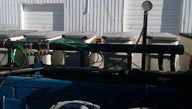 Liquid starter system w/ 2 stir chambers feeding Wilger red-balls and sure-fire green metering tubes w/check values dispensing thru Keeton seed-firmers in-furrow, rated 3-7gpa. Optional 500 gallon tongue mount tank. Less liquid pump, dosatron and raven metering & control valves