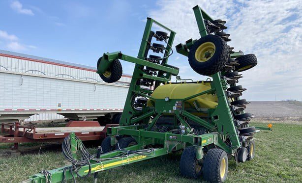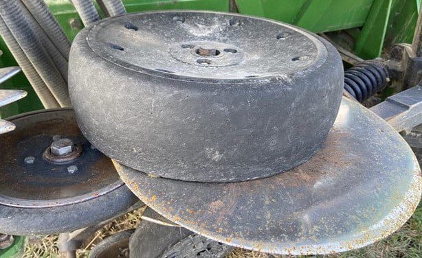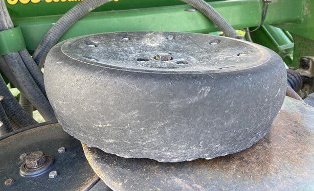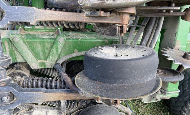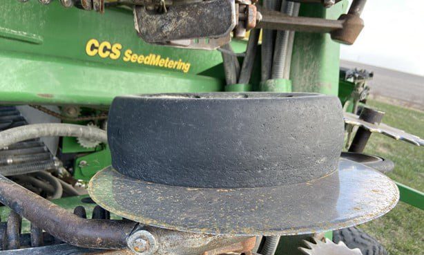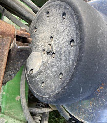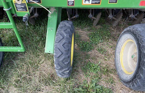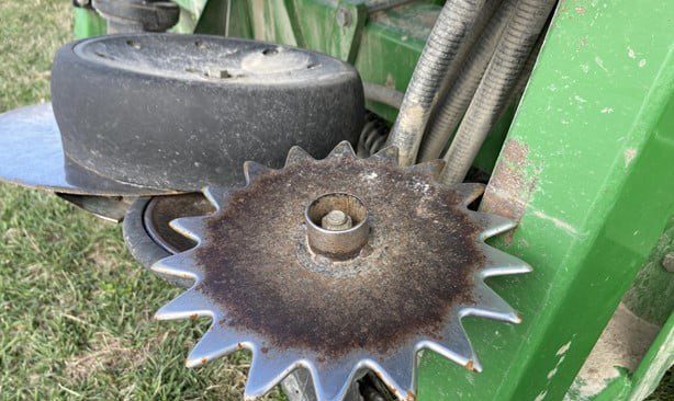 15" rows 35 ft. Spiked closing wheels (have original cast closing wheels). Could use new rubber on a few row units. Seed firmers. Low acres. Always shedded.