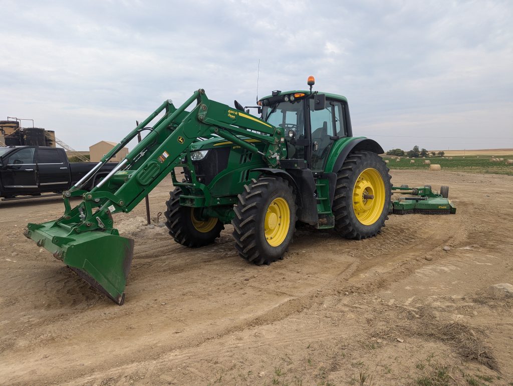 1950 hours, 680 Loader, cab, air heat, 3 point, 3 hydraulics, joy stick loader control, maximum wheel weight configuration. Grapple fork attachment, Grapple like new, was removed when new because we don't use it very much, Tractor used for mowing roads and property area's, loader in the yard, light snow removal around the property misc. loading,10'- 3 point disc work,10' disc drill to seed grass around the property. Front tires new, rear tires 60% new.