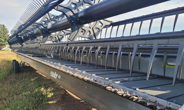 We are losing our local Claas dealer shortly. Looking to move this header for a MacDon. Fresh back from Butler Machinery and ready to work. 45 foot flex draper with cross augers I added to handle canola and peas. Comes with spare sickles and also includes lights in the head, which I am really going to miss.