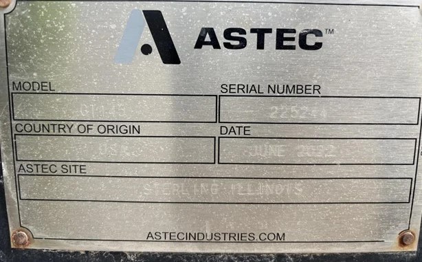 2022 ASTEC GT145S Serial Number 225244 Condition Used Description Mobility: Track Screen Engine: CAT 4.4 Year MFG: 2022 Condition: Excellent Hours: 3795 Located In: Manhattan, Kansas
