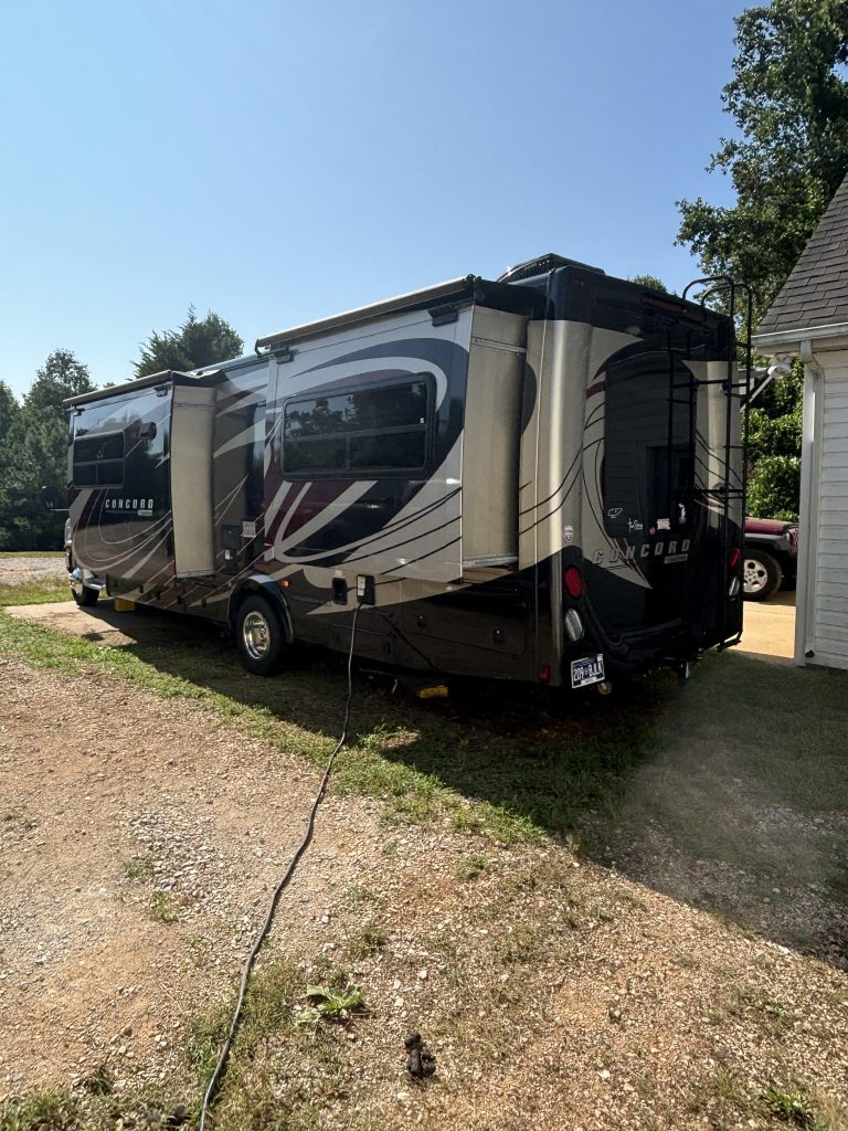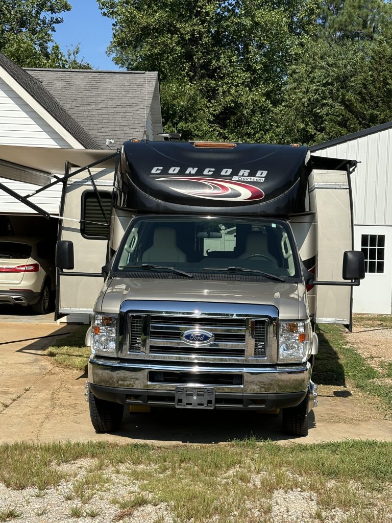 2018 Coachmen, Concord, Class C 300TS Motorhome Ford E450, V10 engine. Only 27,000 miles Michelin tires in good condition, with warranty 30 amp, Auxillary battery Big Foot hydraulic automatic leveling jacks. Back-up camera with side view Three slide-outs with awnings. (Main cabin, dinette and bedroom) Integrated back-up monitor and AM/FM Stereo/CD player. Swivel Pilot and Passenger seats. Very nice, comfortable seating areas convert to sleeping areas (sleeps 6) Front entertainment center with LCD TV, and sound bar. (3 TV’s, Main cabin, bedroom and outside.) Large windows, wrap around dinette. Stainless steel double kitchen sink, Convection/Microwave oven Large refrigerator/freezer Shower with glass door and upgraded showerhead, porcelain foot flush toilet. Exterior shower 60X74 queen bed with Serta mattress. Large wardrobes and closets. Panoramic rear window. Pleated night shades Two A/C units. (Main cabin and bedroom.) Privacy windshield cover Long Arm, exterior mirrors with remote. One touch power awning, new 2025 ONAN , 4.Okw gas generator Auto power entrance step Dish Network dish and box. Located In: SPARTA, TN