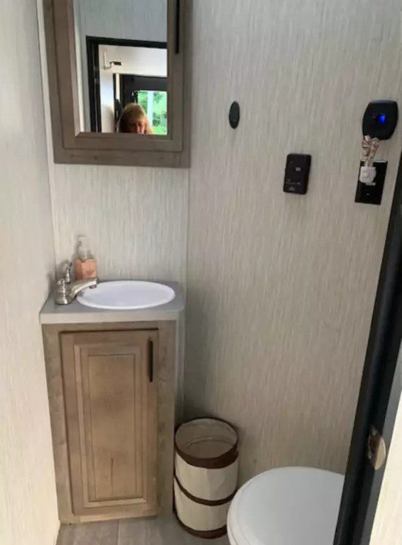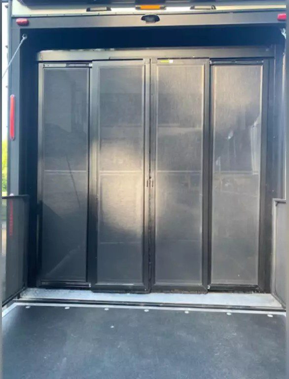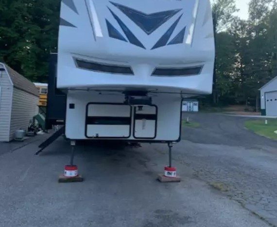 When you want to play hard outside and relax in comfort inside, you need this well maintained Fifth Wheel Toy Hauler with lots of living, sleeping and storage space. It features a 12' 6" toy hauler, 3 slides, 3 awnings, 6 point touch hydraulic auto leveling system, full on board Cummings 5500 generator, fuel station, 3 queen beds, 1 full bed, 1 and 1/2 bath, gas fireplace, a full size residential stainless refrigerator, glass rear patio doors, washer hook up, new upgraded tires, 3 a/c units, LED lighting throughout, and so much more! The front master bedroom provides a queen bed, bedroom slide, tv and privacy. The mid-section includes a large kitchen with double sink, stove, microwave, island, residential refrigerator and lots of storage. There is a dining area with table and 4 under-seat storage chairs, living area theatre seating with heat/massage/light up cup holders, electric fireplace and large TV. The toy hauler garage in the rear includes a HappiJac electric queen bunk with 2 drop down sofas that convert to an additional queen size bed, an additional loft bed, a 1/2 bath, tv, stereo, washer hookup and lots of storage. This space also has it's own heat and a/c.