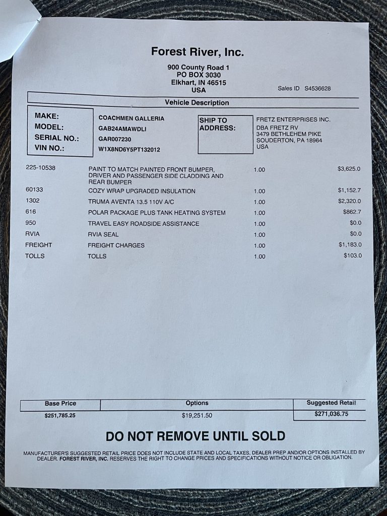 Base price $251,785 added options $19,252 suggested retail $271,036