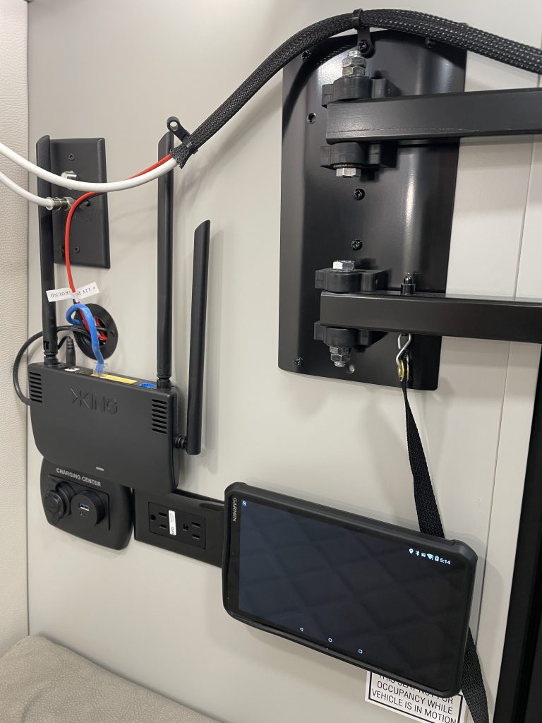 Electronics package, 12 V, 24” smart TV’s, JBl blue tooth stereo, MBUX 10.3” infotainment “ Hey Mercedes” voice guidance, navigation, back up camera, blindspot monitoring, lane assist sensors, Bluetooth radio, Apple care play, *New UPGraded Garmin multi function control panels, sure level holding tank monitors, king Olympus wi-fi router& cell booster prep, 330 WATT solar. Large basement storage. AGWS ( American Guardian Warranty Services) 5 year Ultimate Coverage- Mechanical Protection& Tech coverage- coverage through 1/3/2030