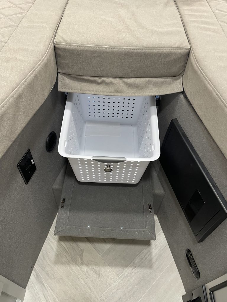 Upgraded Convenience package, Girrard power armless awning w motion sensor & LED lightings, rear screen/shade, slider with screen& lighted step, truma combo furnace/water heater, Truma Aventa 13.5k 110V A/C (night mode + built in dehumidifier ), 12 V macerator, convection microwave, fantastic fan, w rain sensor, induction cooktop, solid surface counter tops, wet bath with sink, toilet and shower with Oxygenics Fury handheld shower head w on/off plus shower miser. R-38 Reflective insulation in floor, upgrade cozy wrap insulation & polar package plus tank heating system. Lagun table & post for front swivel seats and can be placed in bed reclining area. Upgraded front windows covers.